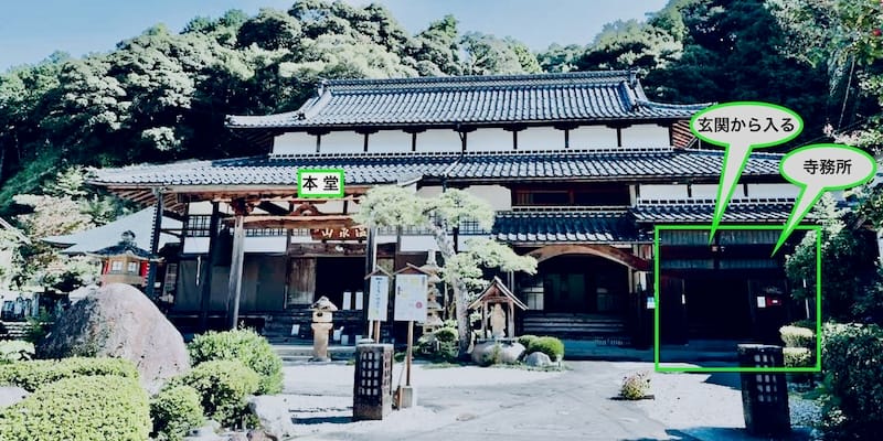 寺務所は境内の本堂右側に位置。玄関から内部へ入ると窓口がある。
