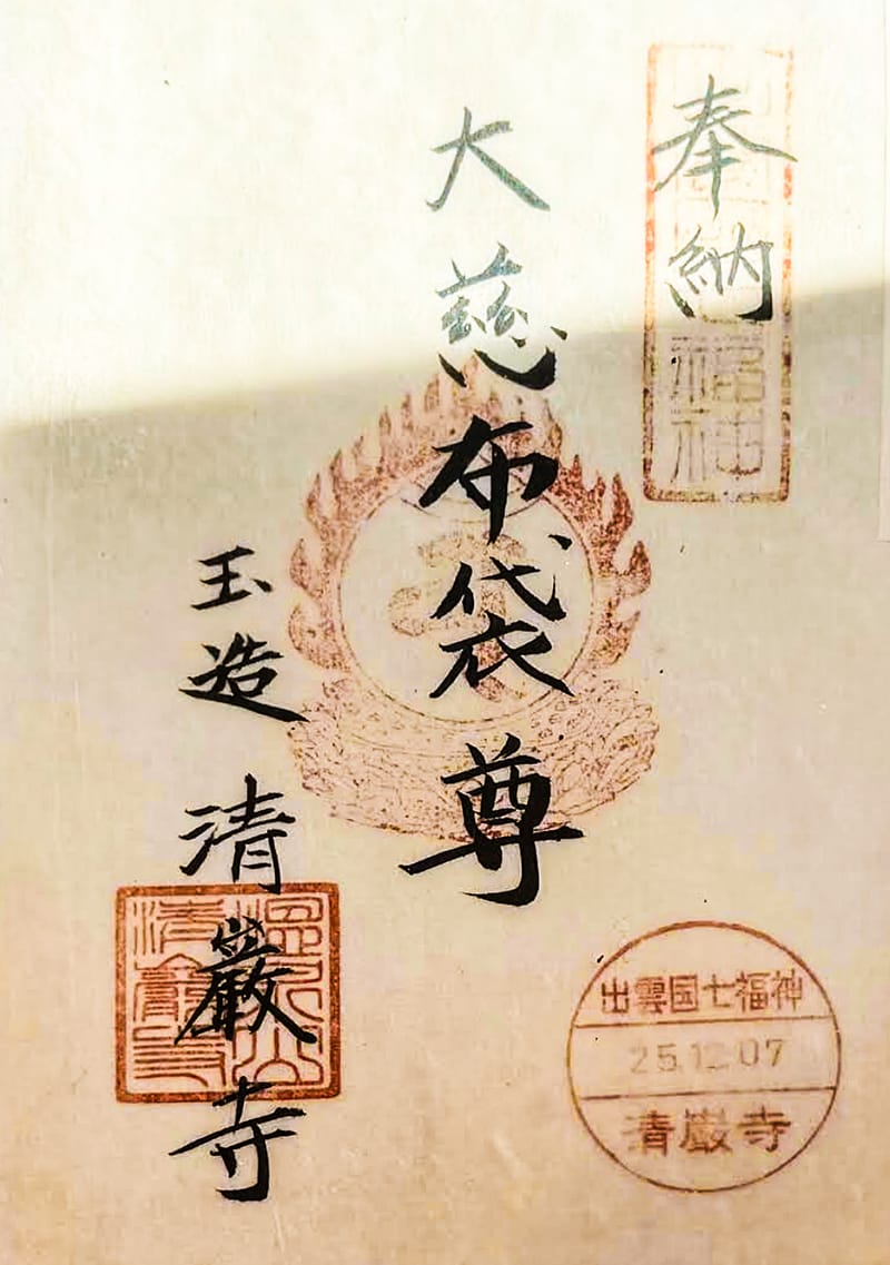 右上に「出雲國七福神」、その下に『出雲国七福神|参拝日|清巌寺』と素敵に陰刻された円印の押印。