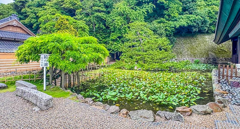 この神楽殿の西側には小さな池泉があり、名前を「鏡の池(かかがみのいけ)」と称する。